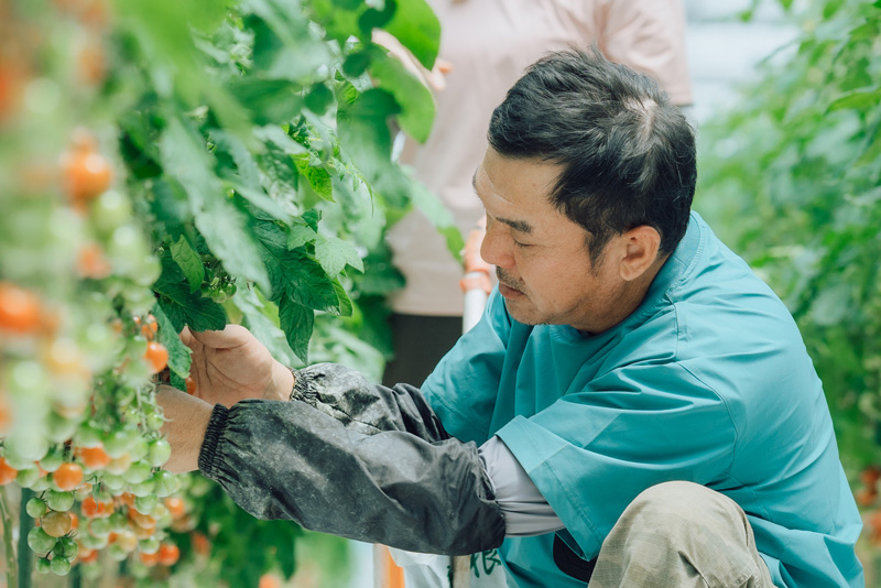 結婚後1年ほど、美里さんはもともとの仕事である介護を続けていたものの、トマトの選果、箱詰め作業の手伝いをしていて「楽しい!」と言ってくれたそう。「それまで農業に関わることがない生活で、珍しかったんでしょうね。箱詰めされてレールを流れていく様子に『おもしろい』と興味津々でした」。本格的に農業を一緒にやってみたいと相談され、「奥さんの方から提案されたのがうれしかったですね。感謝してもしきれないくらいです」。
